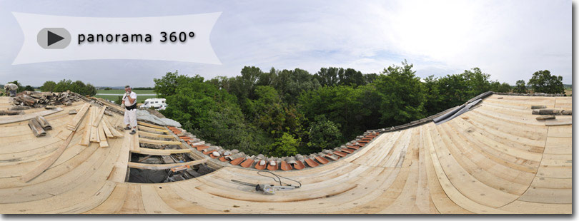 Reconstruction du toit de la ferme - mai 2012![]() Ouvrir panorama compatible mobile et tablette / Open panorama mobile & tablet capable |