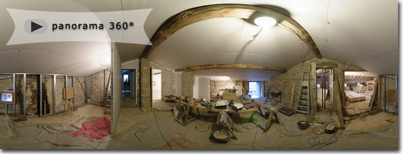 Le grenier et le toit en totale réfection - mai 2012![]() Ouvrir panorama compatible mobile et tablette / Open panorama mobile & tablet capable |